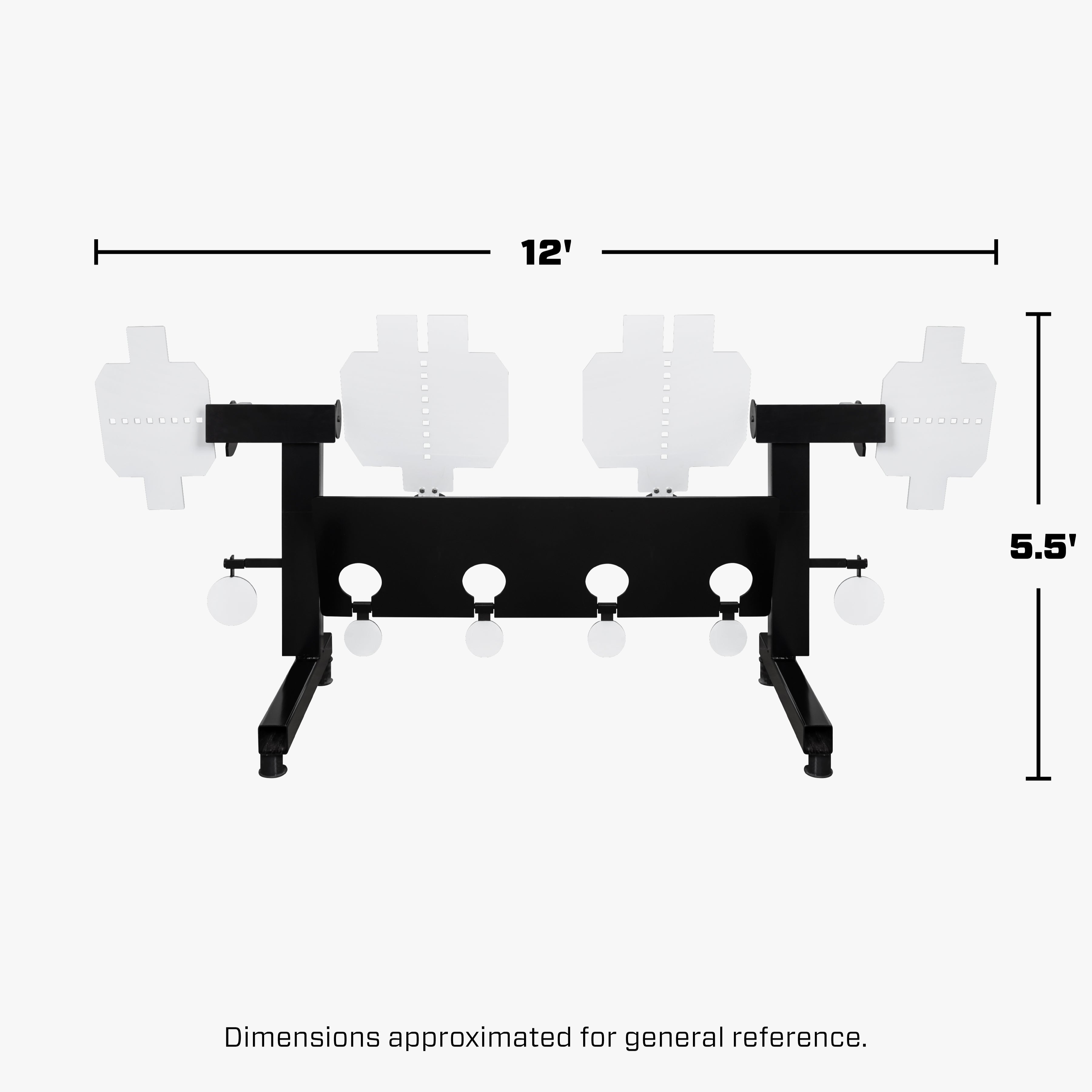 Heavy Duty Structural AR500 Steel Frame for Maximum Durability. Adjustable balanced targets with excellent hit indication. Shooting surface spins & then resets.