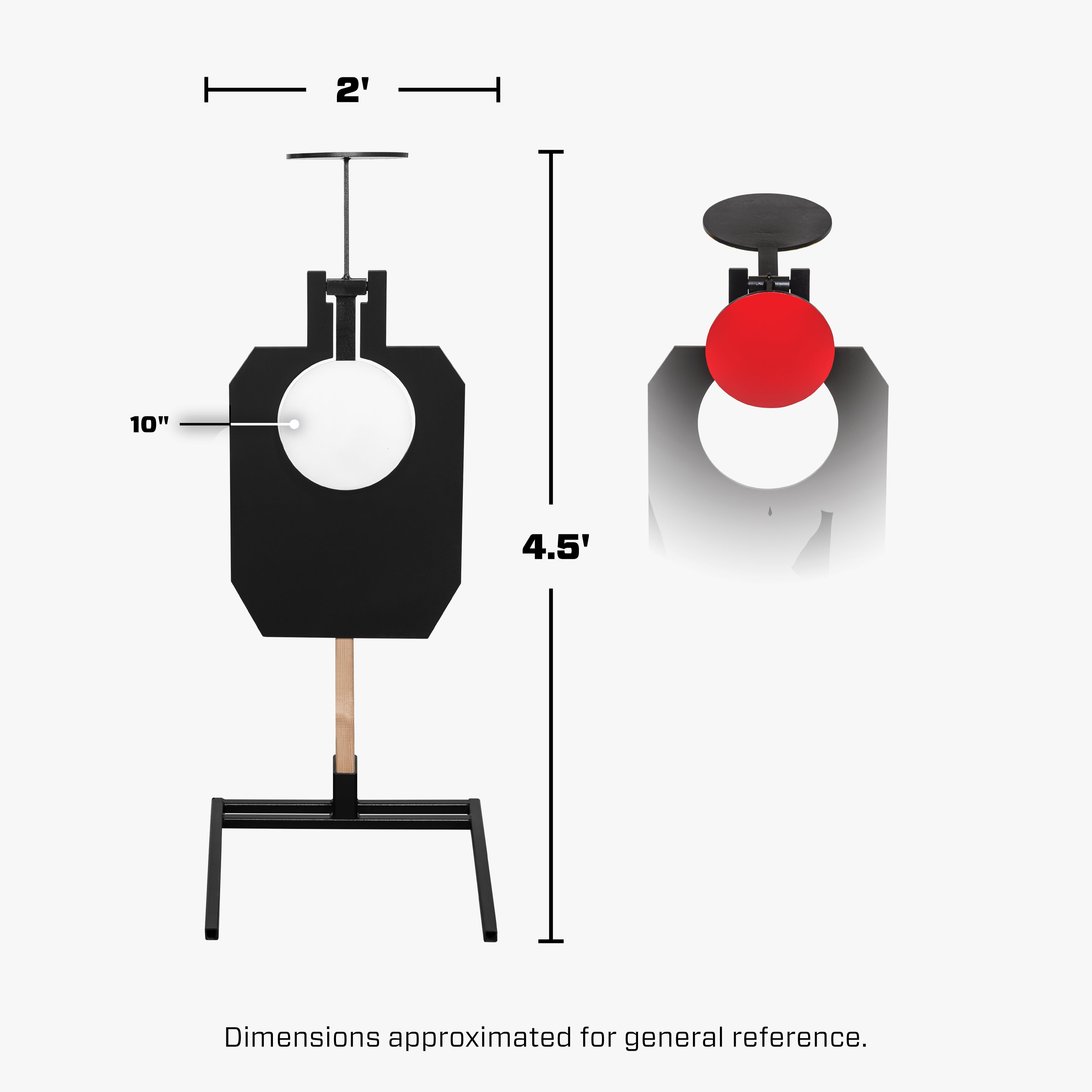 3/8" Thick AR500 steel shooting surfaces. Greasable pivot points with a design focused around enhanced mobility and precision spin. Target and stand separate for easy transport. Common 2x4 for easy height adjustment.